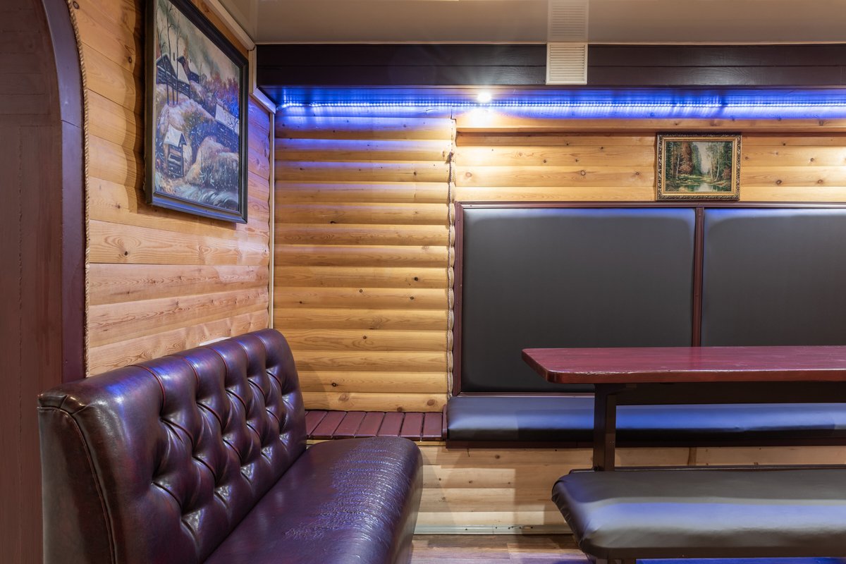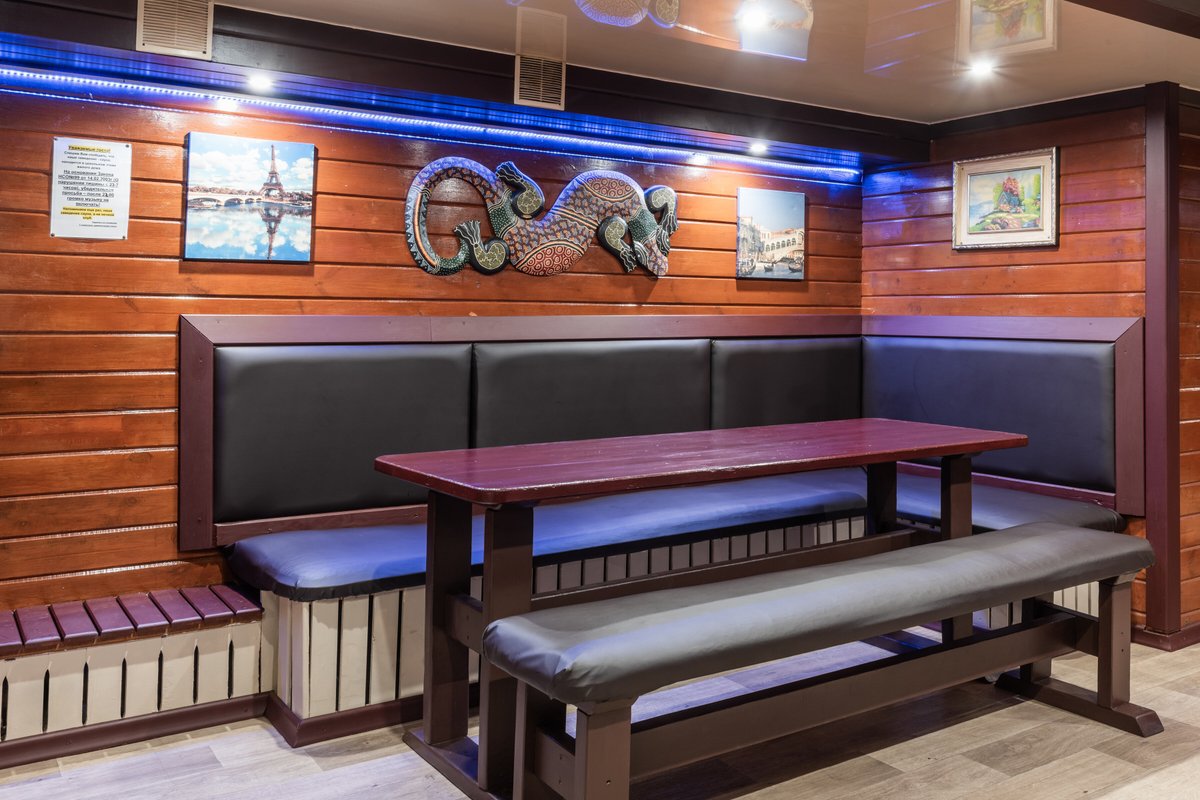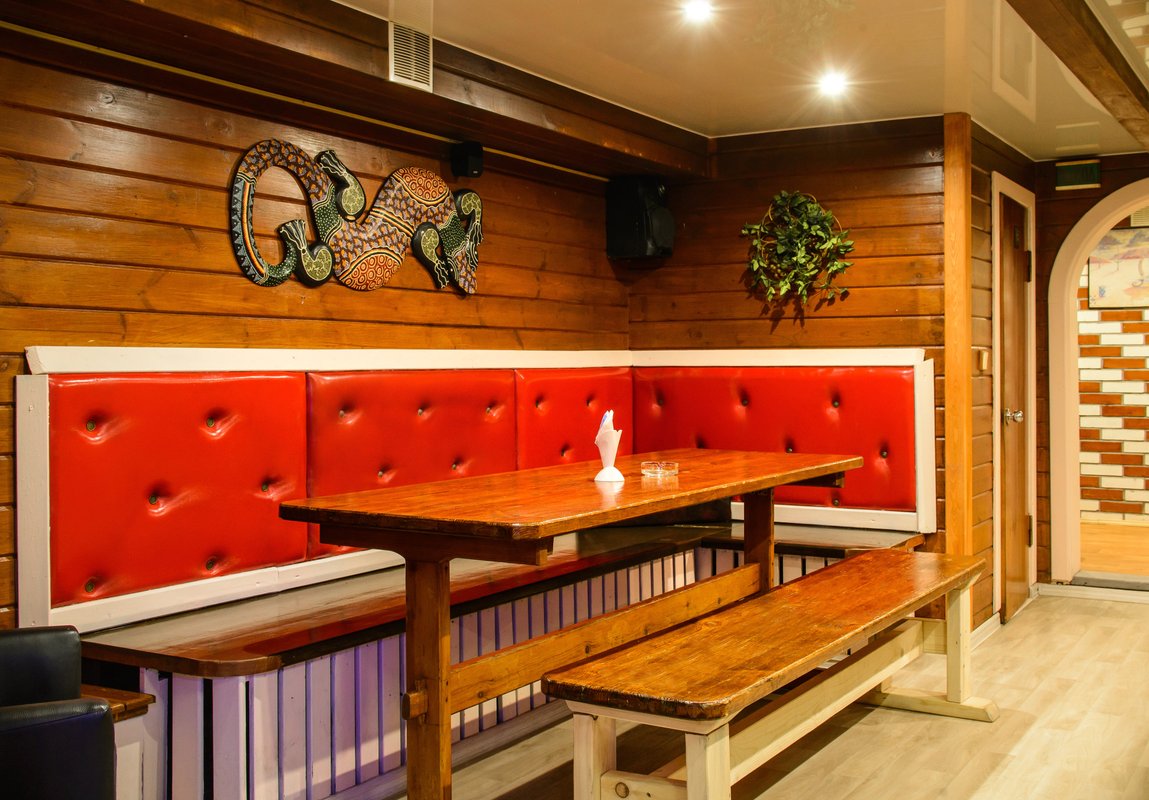 Не хочется в бассейн? Не проблема! Вместо этого можно посидеть в нашей комнате отдыха. Мы постарались создать здесь комфортный, стильный интерьер из максимально натуральных, экологичных материалов, выбрать мебель, которая будет одновременно удобной и приятной глазу. Надеемся, что вы его оцените! Также у нас работает бар, а если нужно, вы можете прийти и со своей едой - мы не против! Только не забывайте, что плотная трапеза непосредственно перед посещением парной - это не самая хорошая идея, согласно мнению докторов. А вот после парной - совсем другое дело!
